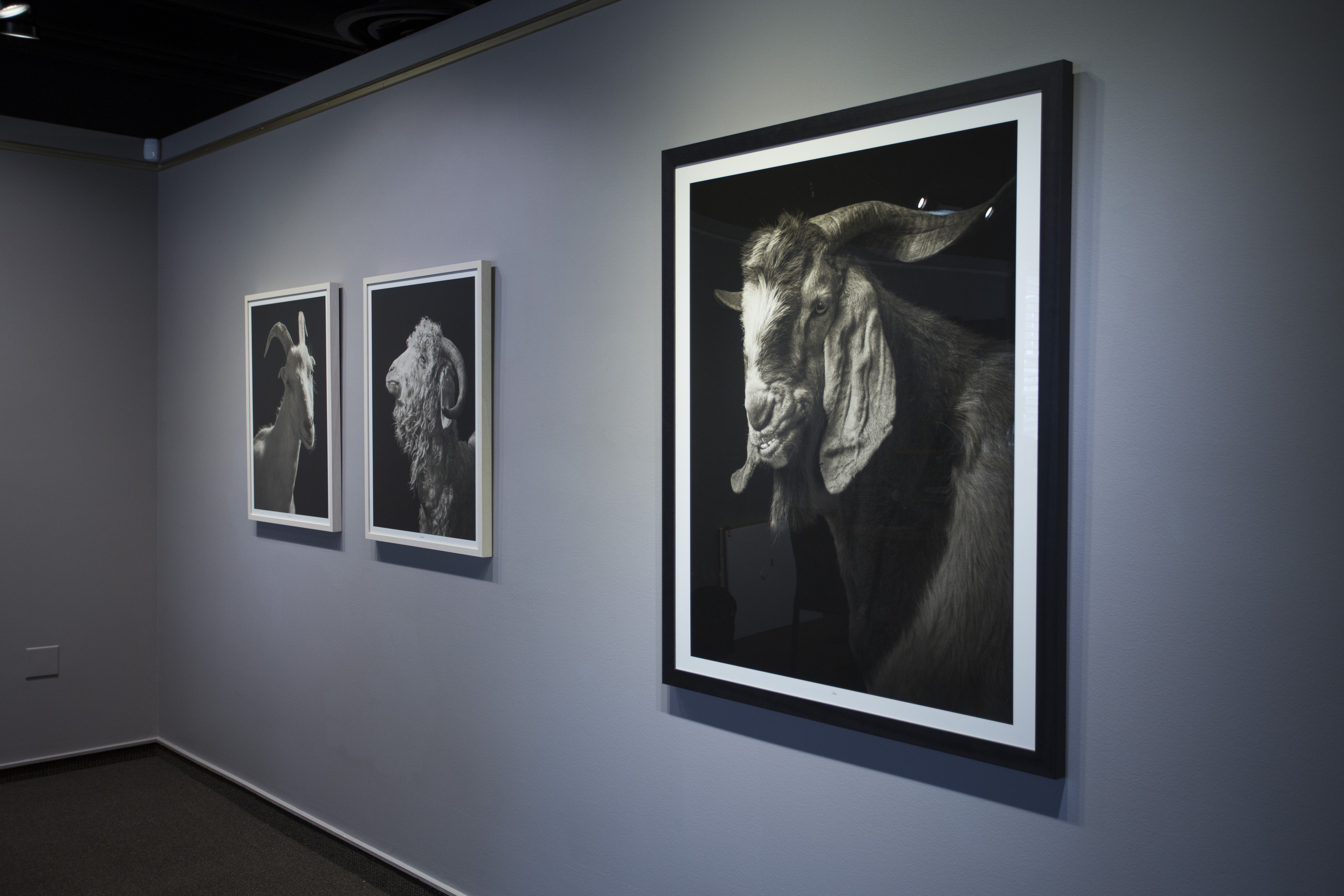 Treated as portrait subjects, they seem to have personalities. Perhapsthey do, and the photograph allows us to see them. Or perhaps the language of the photo cues us to generate the impression of a personage. One wonders if that interplay is any different here than it is in pictures of humans. This is a work about portraiture: what it does and how it works. I’ve made portraits of people for manyyears, and the chemistry of it is still mysterious. I am used to telling subjects that a good portrait is collaboration between photographer and subject. But how do you collaborate with a goat? A goat you’ve just met?